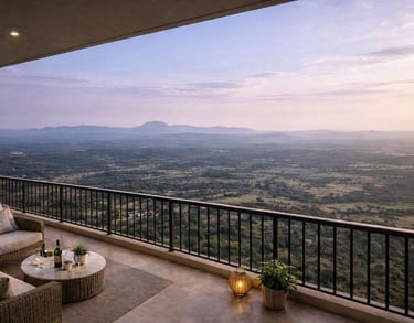 Designed to offer panoramic views of the Aravalli hills and abundant natural light.